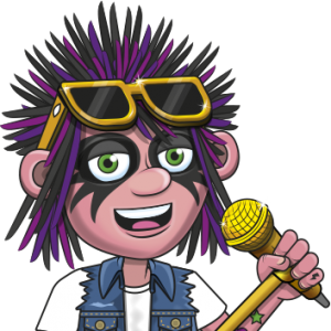 An illustration of a TT Rock Stars character called Spark. He's standing with his arms crossed, while holding his drumsticks.